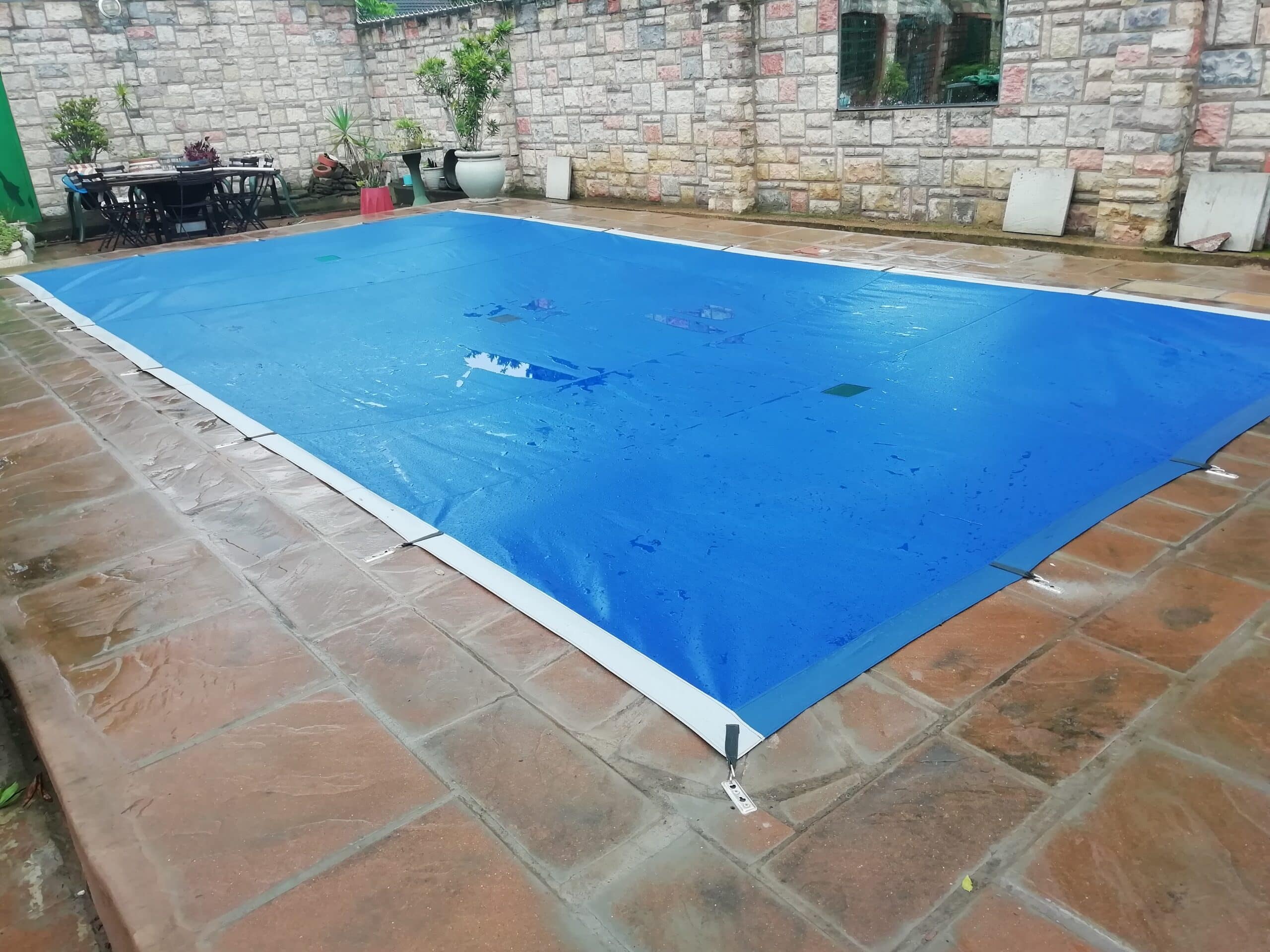 The PVC pool cover is made from high quality, UV-stabilized PVC fabric with aluminum poles running across the width of the pool. The poles act as support, keeping the fabric above the waterline and ensuring that nothing on top of the cover falls into the pool. The cover is fastened down by means of a stainless steel ratchet system on the ends of the cover. Pole pool covers are perfect for protecting your pool from dirt and leaves, preventing water evaporation, preventing children and animals from falling into the pool, and increasing the temperature of the water, allowing you to extend the swimming season. What you will receive with your Pole pool cover: 600g of special-formulated pool cover PVC fabric, aluminum poles (the number of which is subject to the size of the pool), stainless steel (not nickel plated) ratchets and fittings, 2-ton breaking strength webbing, and a cover that can carry up to 220KG. Drainage holes allow for water to flow into the pool.